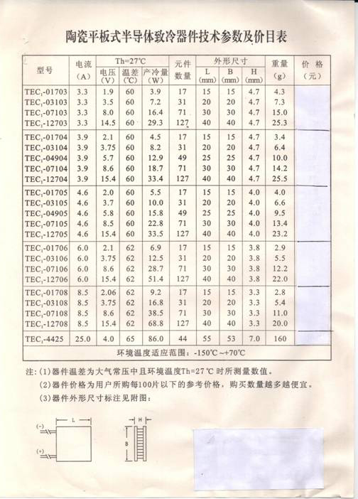 TEC系列半导体致冷组件有什么规格,参数如何?